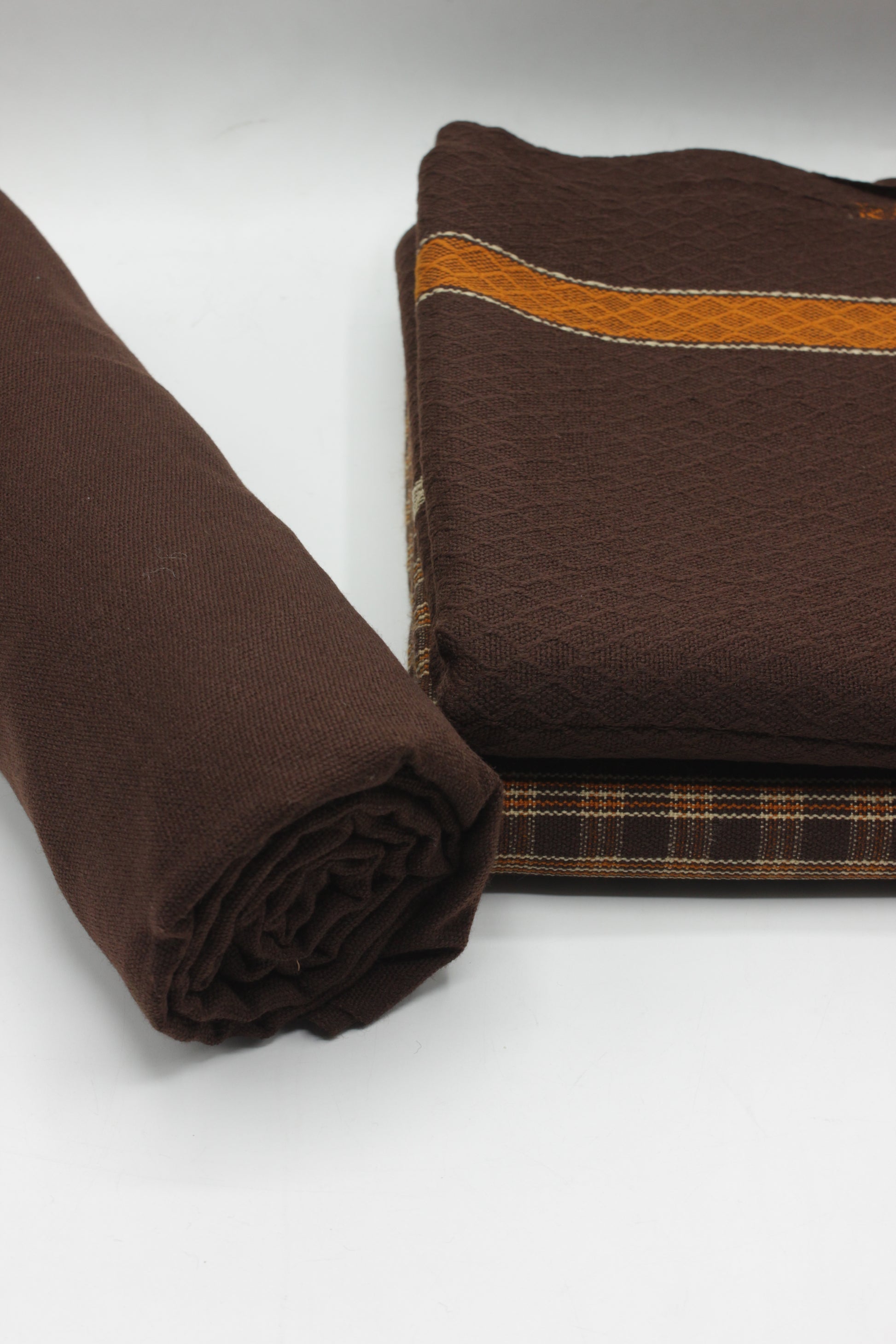 PREMIUM QUALITY BROWN WITH ORANGE PATTERN UNSTITCHED PURE WOOLEN SUIT FOR WOMEN