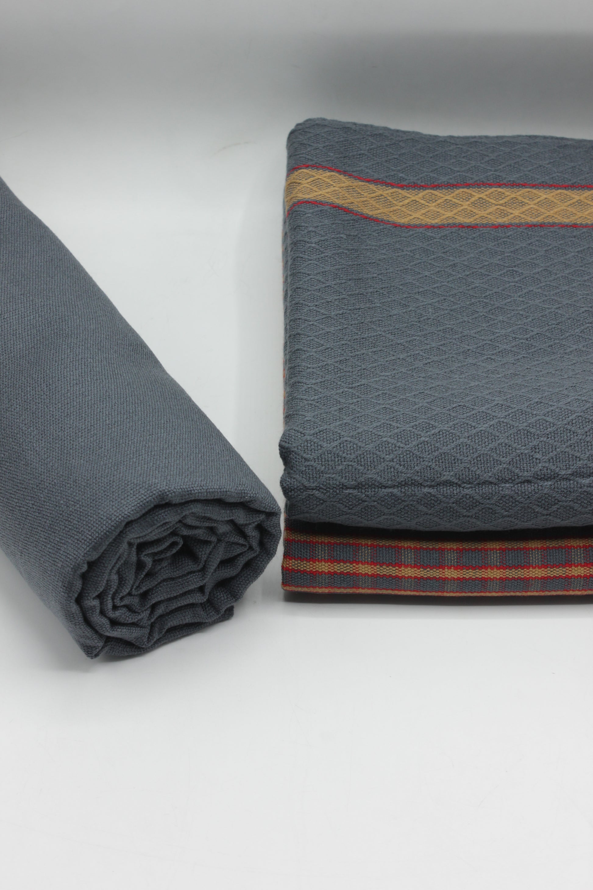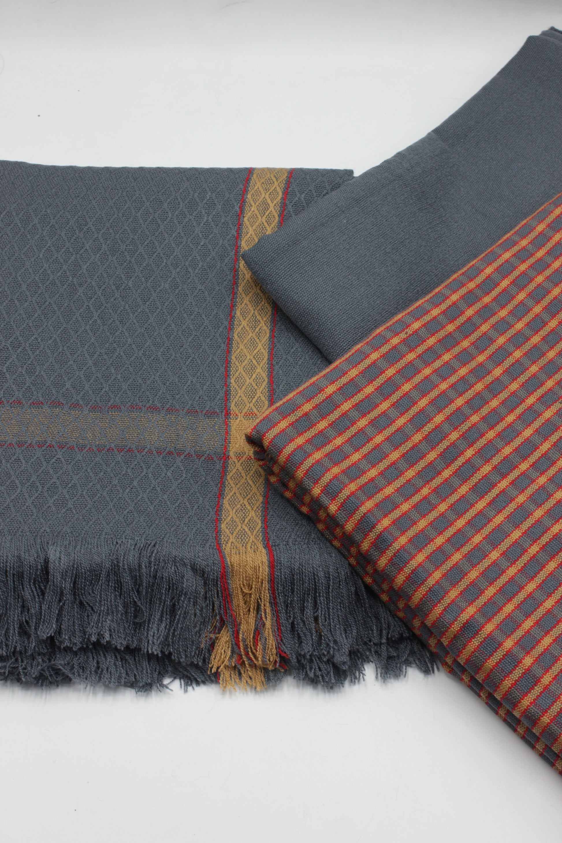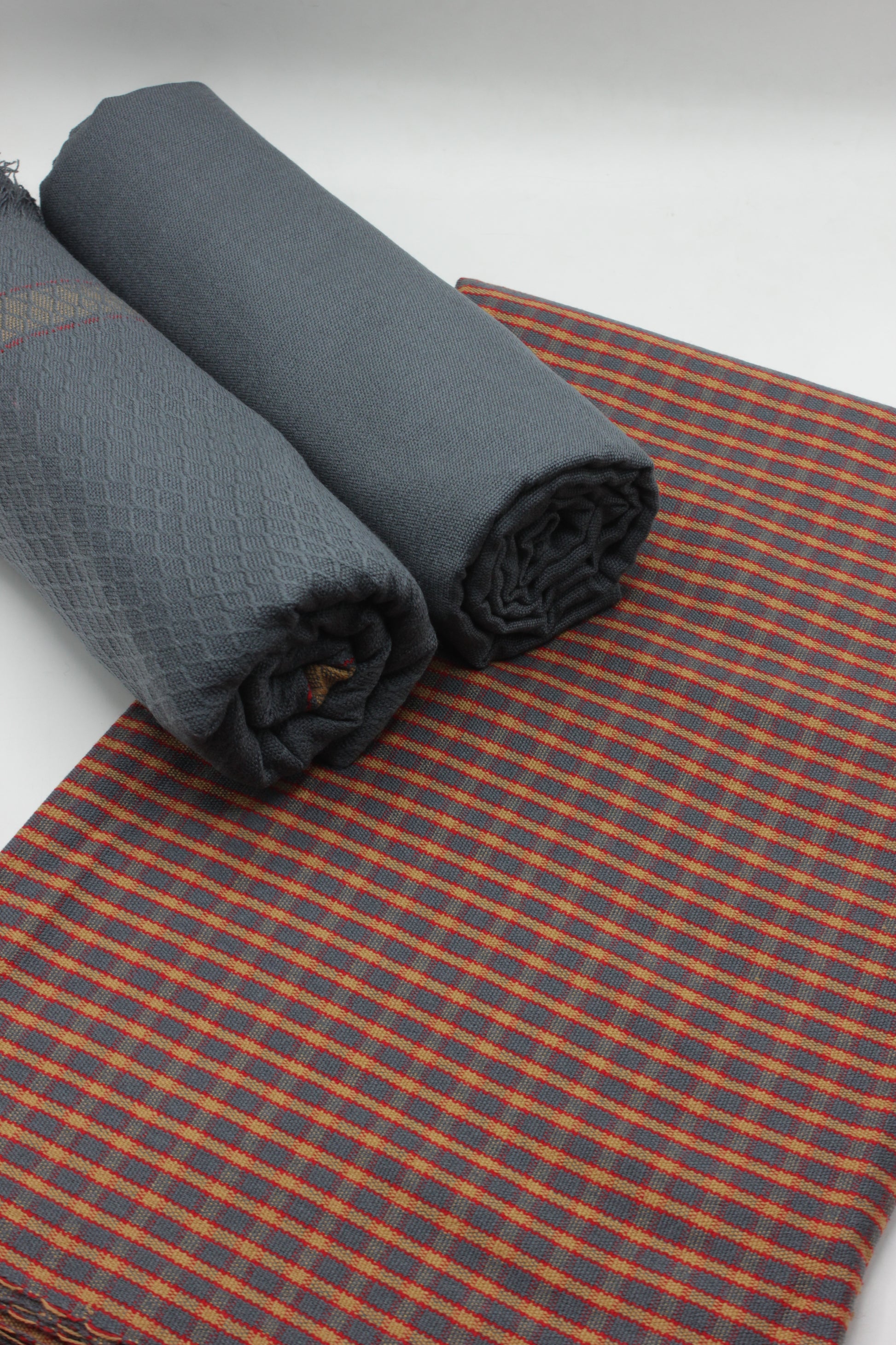 PREMIUM QUALITY GRAY WITH RED PATTERN UNSTITCHED PURE WOOLEN SUIT FOR WOMEN